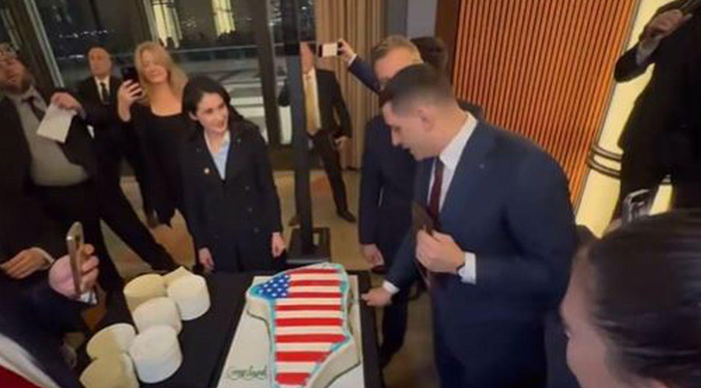 Vizita a căpătat o componentă puternic mediatică după ce HotNews a publicat un material video în care George Simion apare într-un eveniment la Washington, tăind un tort în forma Groenlandei, decorat cu steagul SUA. Simion a explicat ulterior momentul ca parte a „atmosferei” de la o recepție politică.