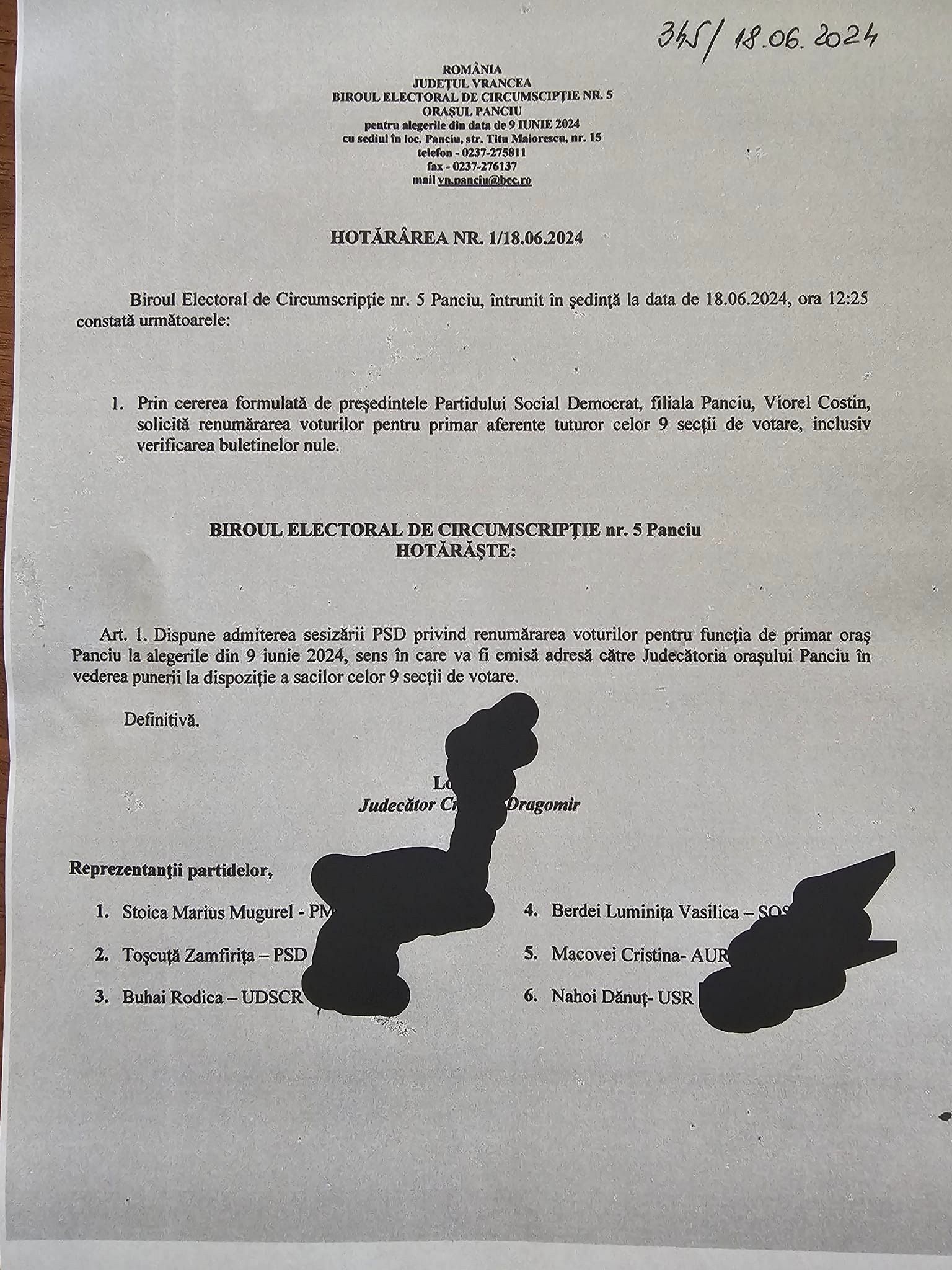 PSD solicită renumărarea voturilor exprimate pentru funcția de primar iar BEC aproba astăzi la 12:25 renumărarea, în absența reprezentantului PNL!