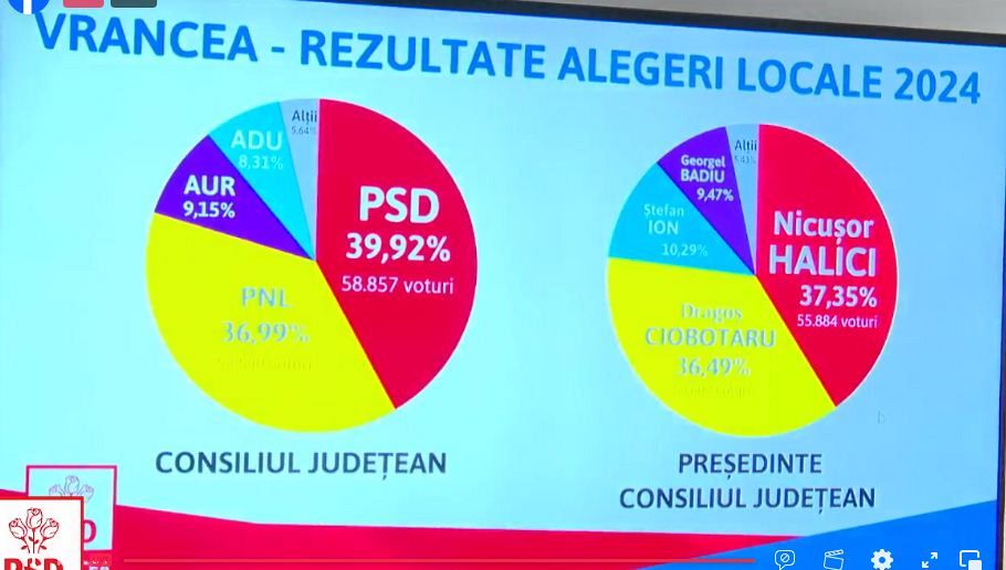 Într-o conferință de presă susținută, vineri 21 iunie 2024, la sediul PSD Vrancea, Nicușor Halici a anunțat că este, conform rezultatelor oficiale primite la partid, noul președinte al Consiliului Județean și că va prelua mandatul începând din luna octombrie 2024, așa cum prevede legislația în vigoare.În conferința de presă susținută, în afara unei analize a rezultatelor oficiale a alegerilor desfășurate pe 9 iunie 2024 în județul Vrancea, Nicușor Halici a adus și critici tăioase actualei echipe de la conducerea CJ și proiectelor asumate de aceasta dar și fostului său competitor politic, la funcția de președinte , Dragoș Ciobotaru.Urmăriți în VIDEO de mai jos înregistrarea integrală a conferinței de presă menționate
