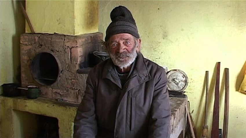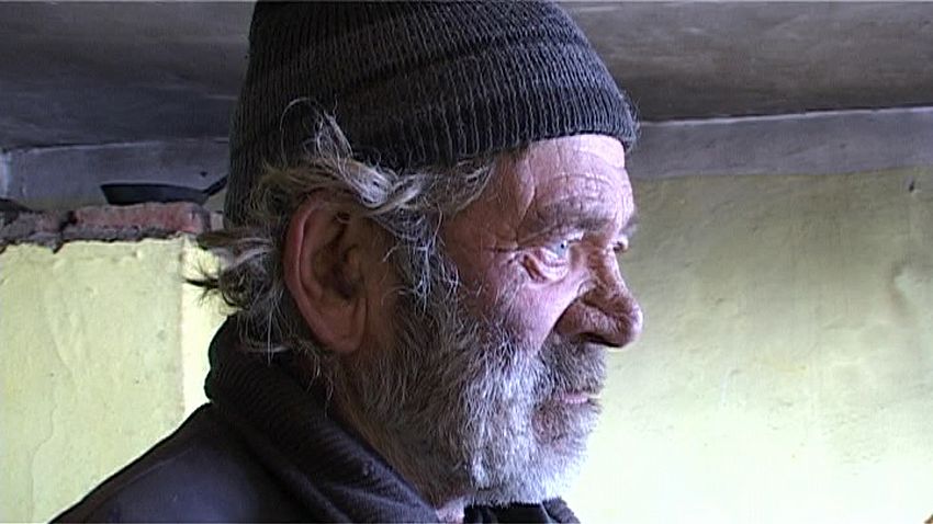 În vârstă de 72 de ani, bătrânul nu mai are pe nimeni pe lume. Rar îi trece pragul câte un localnic care-i duce de pomană de sufletul morţilor, în zi de sărbătoare. Bătrânul n-are cu cine vorbi, n-are cine-l îngriji, n-are act de identitate, n-are pensie şi nici de muncit nu mai poate munci ca altădată, deşi n-ar recunoaşte acest lucru pentru nimic în lume. Când e vremea mai bună, dă o mână de ajutor prin satul aflat la câţiva kilometri de „casă”, iar gospodarii îl omenesc cu ce pot.