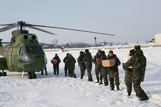 Militari de la Brigada 8 LAROM, Brigada 282 Infanterie Mecanizată şi Brigada 1 Mecanizată au acţionat pentru deszăpezirea căilor de comunicaţii în Dumitreşti, Dumbrăveni, Caiata şi Bogza, cu autocamioane DAC şi autovehicule blindate pe şenile. De asemenea, ministrul Apărării, Gabriel Oprea, care a fost pezent sîmbătă în Vrancea, a transmis că Armata este pregătită să intervină în zonele afectate de viscol şi ninsori pentru salvarea vieţilor puse în pericol, pentru distribuirea de alimente şi bunuri de strictă necesitate şi pentru deszăpezirea căilor de acces. “Armata acţionează acum, aşa cum a făcut-o şi la inundaţii, în urmă cu doi ani, într-o perioadă excepţională, în care sînt în pericol vieţi omeneşti şi avutul personal. Armata acţionează din solidaritate, este o datorie constituţională să fie alături de popor, la greu, iar militarii acţionează 24 de ore din 24 alături de colegii din Ministerul Administraţiei şi Internelor şi îşi fac datoria. Acesta este un mod excepţional de solidaritate. Sîntem o armată NATO, ne facem datoria cu succes nu numai în teatrele de operaţii, ci şi aici în ţară unde este nevoie de noi”, a declarat ministrul Gabriel Oprea. (Raluca MANOLACHE)