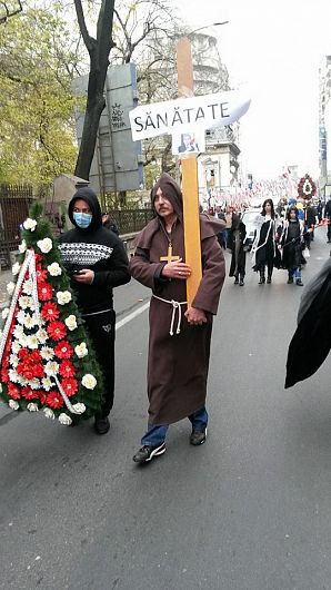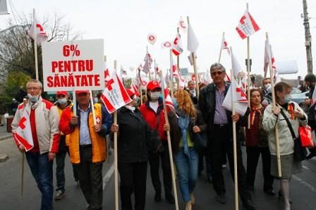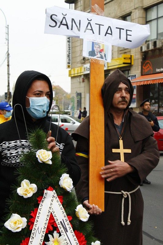 Protest în Bucureşti cu masca pe figură! „Eu vă tratez, nu FMI-ul”, „Vreau să lucrez în România”, „Sunt medic român şi îmi pasă”, „Nu mai vreau să tac”, „6% din PIB la sănătate”. Acestea au fost doar cateva dintre mesajele transmise de sindicaliştii din sistemul de sănătate care au protestat sambătă în Bucureşti, unde au organizat un marş sub forma unui cortegiu funerar. Mii de angajaţi din Sănătate, inclusiv 50 de medici şi asistenţi din Vrancea, dar şi studenţi de medicină au participat la un marş al tăcerii pe traseul Piaţa Victoriei – Palatul Parlamentului şi au solicitat o finanţare mai bună pentru sistemul sanitar. Protestatarii nu numai că au purtat măşti chirurgicale dar au adus în faţa Guvernului un dric cu coroane de flori şi un sicriu pe care scria "Sănătate". “Marşul a fost organizat de Coaliţia Profesioniştilor din Sistemul de Sănătate, organizaţie care militează pentru obţinerea a minimum 6% din PIB pentru sistemul sanitar, o legislaţie care să garanteze independenţa profesională a celor care lucrează în sistemul public şi privat; o lege a salarizării specifică sistemului de sănătate (creşterea salarizării), dublarea salariilor medicilor rezidenţi, apărarea demnităţii şi renunţarea la denigrare profesioniştilor de către autorităţi; organizarea unităţilor medicale cu paturi în sistem public pentru asigurarea unor servicii promte şi de calitate pentru pacienţi; consultarea reală a Coaliţiei profesioniştilor din sănătate cu privire la orice măsură ce poate afecta funcţionarea sistemului de sănătate”, se arată într-un comunicat de presă. Nu trebuie să uităm că la nivelul judeţului Vrancea, sindicaliştii care fac parte din Sanitas strang în această perioadă semnături pentru declanşarea grevei generale în sistem. Din Coaliţia Profesioniştilor din Sistemul de Sănătate fac parte: Colegiul Medicilor din România, Federaţia Sanitas, Colegiul Medicilor Dentişti din România, Colegiul Farmaciştilor din România, Colegiul Psihologilor din România, Ordinul Asistenţilor Medicali Generalişti, Moaşelor şi Asistenţilor Medicali din România, Ordinul Biologilor, Biochimiştilor şi Chimiştilor din România, Federaţia Sindicatelor Medicilor “Dr. Ioan Cantacuzino”, Asociaţia Medicilor Rezidenţi, Federatia Asociaţiilor Studenţilor la Medicină, Societatea Medicilor din Colectivităţile de Copii şi Tineri, Asociaţia Serviciilor de Ambulanţa din România, Asociaţia Naţională a Farmaciştilor de Spital din România. (Raluca MANOLACHE)