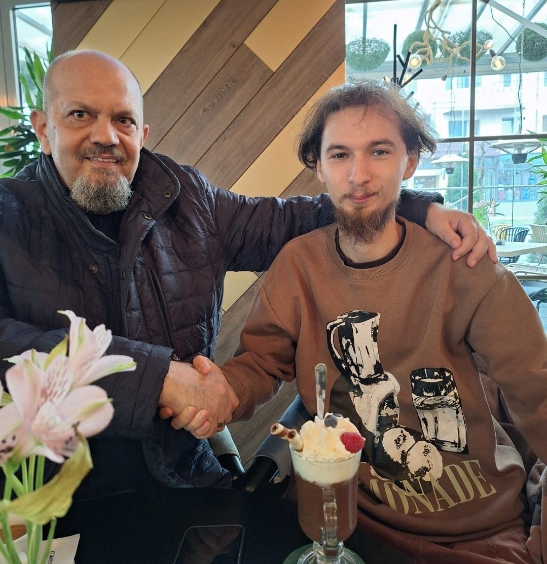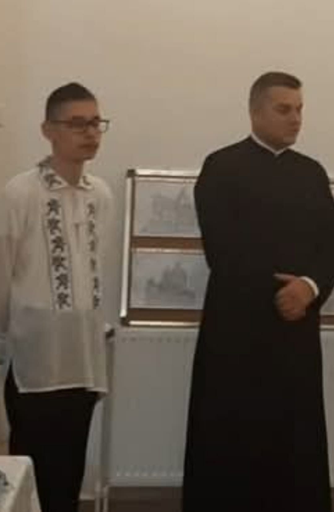 Anii treceau și băieții creșteau repede. Datorită mamei, au prins dragoste de biserică. Noi ne-am bucurat foarte mult, dar am crezut că este un lucru normal să fii aproape de Bunul Dumnezeu! Nu a existat sărbătoare ca ei să nu fie împărtășiți. Când au mai crescut puțin și au început să cunoască mai bine tainele bisericii, au mers din ce în ce mai des la Catedrala din centrul orașului, unde suntem arondați. Preoții Florentin Răuță, Ionuț Ploscaru, Alexandru Savin și Ștefan Maftei le-au acordat atenție și încredere pentru că îi vedeau des la biserică, nu doar în zilele de sărbătoare. Într-o duminică, la slujba Sfintei Liturghii băieții noștri au fost invitați să cânte în strană și au fost foarte fericiți când au aflat că vor face parte din grupul care cântă alături de preot. Cred că acest lucru se întâmpla prin clasa a X-a. Au avut ocazia să îl vadă pe Înaltpreasfințitul Ciprian și să îl cunoască. În data de 24 ianuarie 2024, când acesta a slujit la Catedrala din Focșani, Andrei a avut marea bucurie să-i ofere Înaltului prelat, un tablou de dimensiuni mari, ce reprezenta catedrala desenată de el, în creion. Părintele Ciprian a rămas foarte surprins și impresionat de frumusețea lucrării și a primit cu drag acel dar.