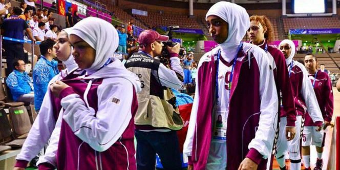 Qatarul a decis să-şi retragă selecţionata feminină de baschet de la Jocurile sportive ale Asiei din Coreea de Sud, după ce organizatorii au refuzat să permită purtarea vălului islamic (hijab) în timpul meciurilor, a anunţat ieri un oficial al delegaţiei din Qatar.Ba schetbalistelor din Qatar li s-a cerut să-şi scoată vălurile de pe cap înaintea meciului cu Mongolia, programat miercuri, însă acestea au refuzat, astfel că organizatorii nu au avut altă opţiune decat să acorde victoria adversarelor acestora. Articolul 4.2.2. din regulamentul Federaţiei internaţionale de baschet (FIBA) prevede ca jucătorii şi jucătoarele să nu poarte nimic pe cap în timpul meciurilor, fiind interzise totodată accesoriile de păr şi bijuteriile.
