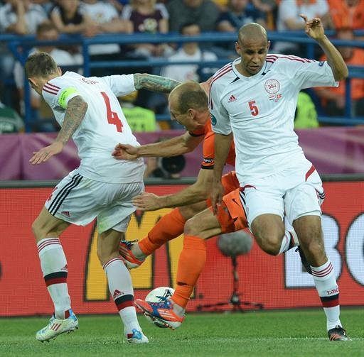 Şuturi în afara porţii: 22-1!; şuturi pe poartă: 5-4; bare: 1-0; scor final: 0-1. Trecand peste şansă şi o eroare importantă de arbitraj (în minutul 90, Jacobsen a jucat mingea cu mana, în careu, fără ca Skomina să ia vreo decizie), cifrele spun aproape totul despre un joc încheiat cu un rezultat extrem de surprinzător. Mare favorită, Olanda a dominat aproape în permanenţă, uneori copios, însă a fost certată cu precizia, iar intervenţiile lui Andersen au fost de poveste, astfel că nici Van Persie, nici Robben (şase şuturi necadrate!), Affelay, Snejder, Van Bommel ori Huntelaar (primul şi ultimul din poziţii unu la unu cu portarul!) nu au găsit drumul spre gol. În schimb, disciplinata echipă daneză a fost harnică şi extrem de eficientă în ofensivă, fiecare zvacnire în atac generand panică la poarta lui Stekelenburg, care a fost învins în minutul 24 şi a avut emoţii în alte cateva randuri. Într-un astfel de peisaj, nici măcar schimbările disperate, ultraofensive, făcute pe final de Van Marwijk, nu au mai modificat ceva, astfel că şi aşa complicata grupă B a pornit la drum cu calculele de calificare şi mai încalcite. (OM)
