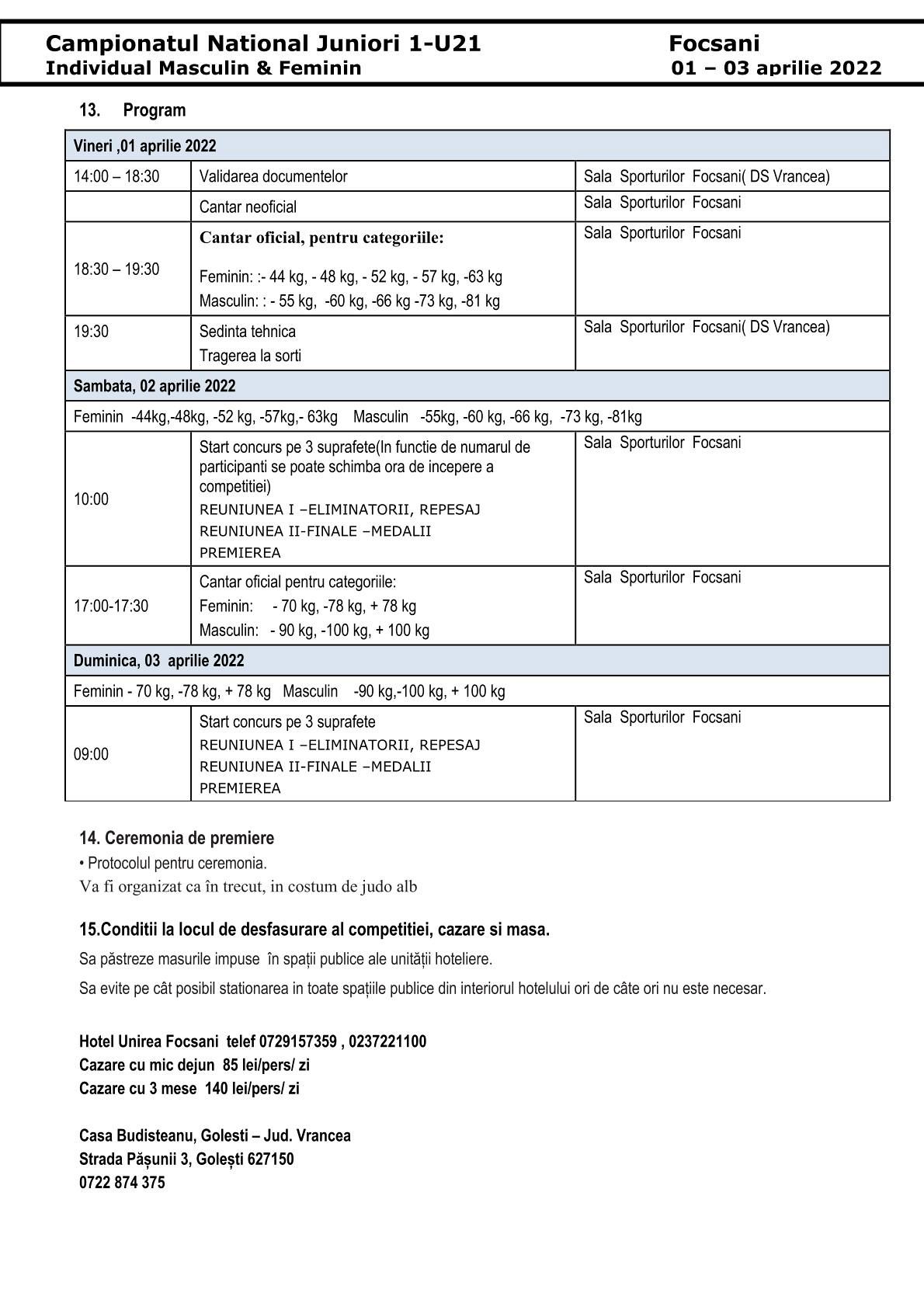 La acest concurs vor participa 280 de judoka de la 60 de cluburi din țară printre care se numără și judoka de la CSM Focșani 2007-LPS Focșani, CS Unirea Focșani, CSȘ Focșani.