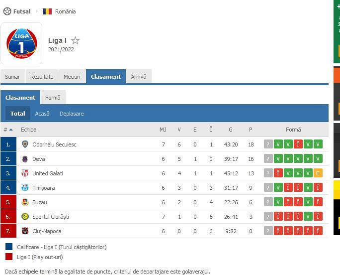 - Citiți și clasamentul la zi al ligii I la futsal după meciul disputat sâmbătă 30 octombrie 2021 , FK Odorheiu Secuiesc - CSL Sportul Ciorăști:10-1 ( 6-0)