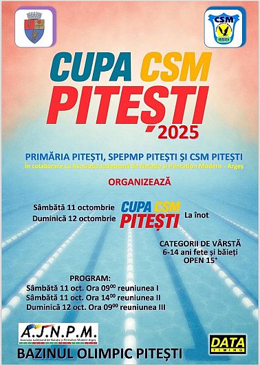 La finalul săptămânii trecute, înotătorii vrânceni care se antrenează la Bazinul de Înot Didactic – Consiliul Județean Vrancea au participat cu succes la competiția Cupa CSM Pitești 2025, desfășurată la Bazinul Olimpic Pitești. Evenimentul, organizat de Primăria Pitești și CSM Pitești, a reunit peste 200 de sportivi din întreaga țară.