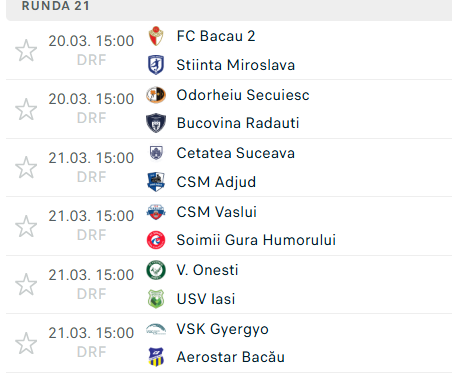În etapa a 21-a, programată în perioada 20-21 martie 2026, CSM Adjud 1946 va juca în deplasare împotriva formației Cetatea Suceava, una dintre echipele aflate în partea superioară a clasamentului.