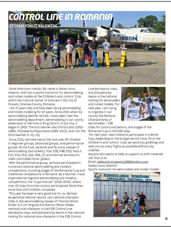 Interviul realizat de publicația americană evidențiază parcursul profesional al lui Ștefan Ionuț Valentin, experiența acumulată în aproape trei decenii de activitate în aeromodelism, dar și rezultatele obținute alături de copiii și tinerii pe care îi pregătește în cadrul Centrului Cultural Vrancea.