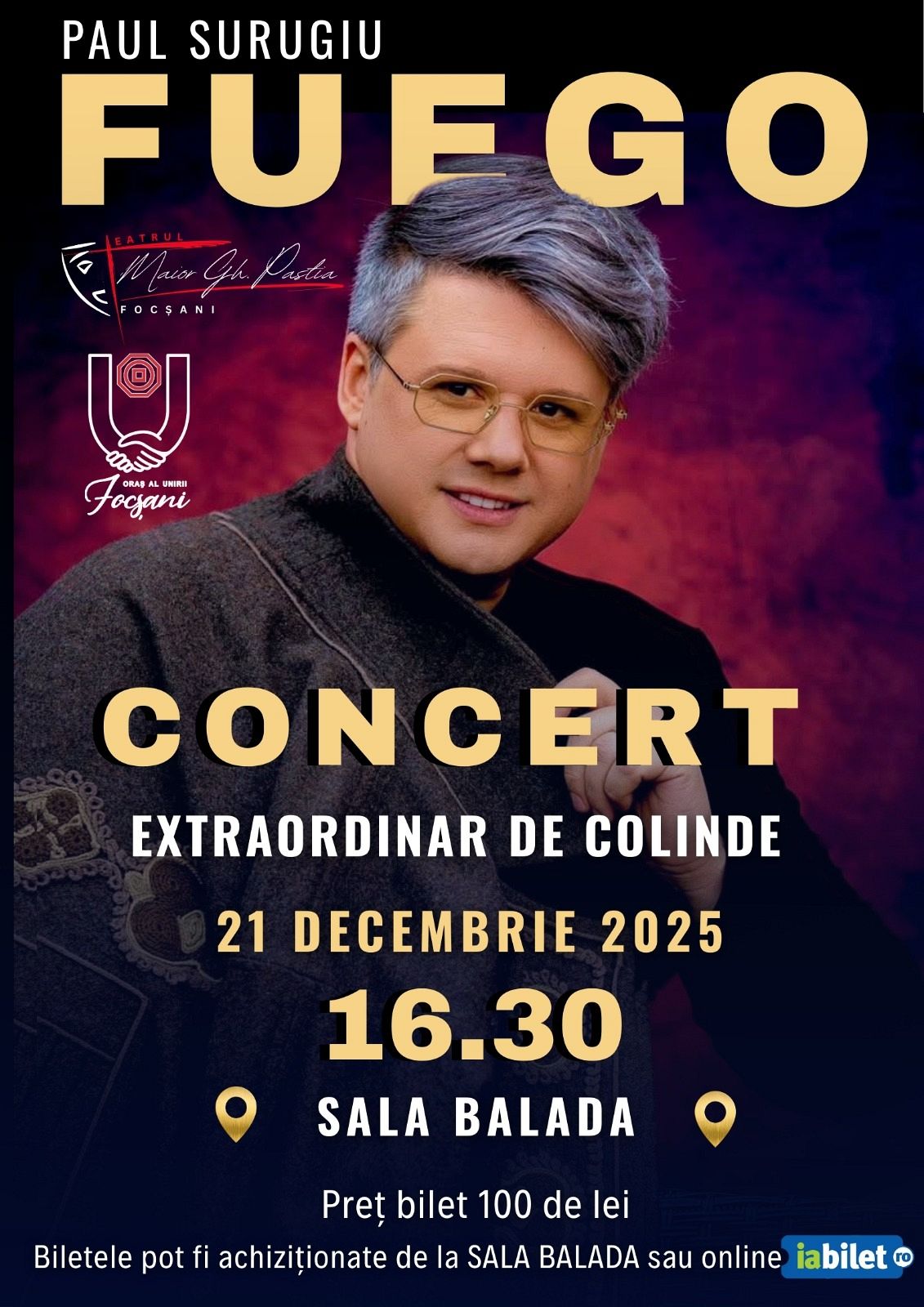 Cel mai așteptat moment al lunii decembrie este, fără îndoială, concertul extraordinar al lui Paul Surugiu – Fuego. Evenimentul va avea loc pe 21 decembrie, la ora 16.30, la Sala Balada, și promite o seară plină de emoție, colinde nemuritoare și atmosfera autentică a sărbătorilor.